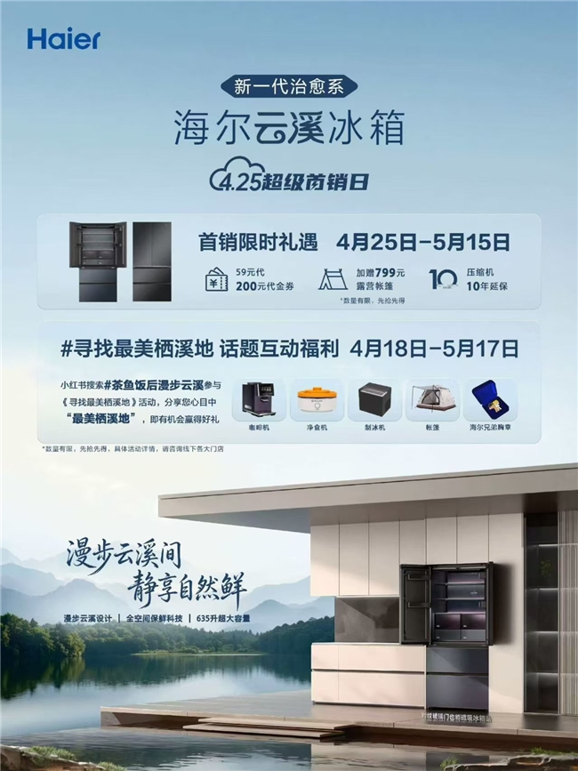 冰箱贴火了,冰箱却“消磁”了。这句话直观道出了当下玻璃门冰箱贴不上冰箱贴的现状,相关话题浏览量已超过4亿次。针对这一全民痛点,海尔冰箱推出行业首款岩纹可磁吸玻璃面板的“云溪”新品,并在4月25日正式上线开启预售,用户预定新品时还可以在小红书参与“寻找最美栖溪地”活动,赢取惊喜好礼。
