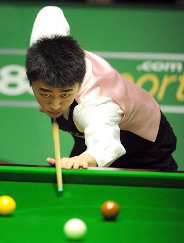 2012斯诺克世锦赛北京时间昨天下午至今天凌晨首轮的一场比赛,中国选手梁文博挑战卫冕冠军“巫师”希金斯。比赛中两名选手争夺的非常激烈,比分也是交替领先。比赛一直战成9-9平来到决胜局,最终希金斯抓住梁文博翻袋失误清台拿下这局,从而以总比分10-9将梁文博淘汰出局,希金斯成功挺进本届世锦赛次轮。