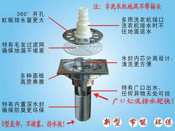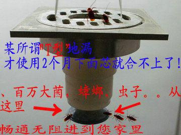 揭秘地漏大骗局 地漏的释义: 地漏,顾名思义就是漏。但保证漏水的前提就是要防堵,不防堵,再好的地漏也没有用。没有防臭效果的地漏只能叫检查口,【检查口就是当管道堵了时来疏通管道的口。】所以说好的地漏应具备防堵,防臭的功能。 都说防臭我咋选,我挑地漏花了眼。 地漏现状: 目前市场上的地漏品牌。种类繁多,材质不一。所有的叫卖者都说是防臭地漏。但真正能防臭的会有几个? 一.目前市场上常见地漏中:有利用磁铁的,弹簧的,翻板的,齿条式的浮球等原里的地漏。这些地漏有水时打开,没水时关上,设计原理都挺好的,但实际应用中流的都是脏水,毛发,纤维等会粘在地漏上。根本封不严,起不到防堵和防臭,作用。达不到彻底防臭效果。 二.也有一些水封地漏,但水封浅的可怜。根本耐不住管道内的正负压。所以这些地漏不能用。 内置密闭深水封才是防臭的 其实要想识别地漏防不防臭很简单,就像日本的TOTO.美国的美标,德国的科勒和所有马桶一样。都是靠水封来防臭的,小日本不发达吗?德国,美国不发达吗?为什么不把弹簧,磁铁,翻板弄在马桶上。所以说水封是最有效的防臭方式,地漏必须是密闭深水封,才能有效防臭。说白了地漏防臭靠的就是结构,即使用黄金来做地漏,结构不合理也没有用。照样不防臭。 讲解各种地漏: T型磁铁地漏 原理图 弹簧地漏 原理图 翻板地漏 原理图 磁铁地漏 弹簧地漏 翻板地漏 (还有一些什么四防芯、原理阀、浮球、齿轮的等) 这些地漏统称为自封地漏,都是利用重力有水来的情况下打开,没水的情况下合闭。看起来貌似会防臭,但是实际使用起来就大相径庭了。根本不能防臭。 原因:因为地漏排水的水质较差还有毛发等等,这些自封地漏的那些密封盖板容易污损,一旦无损,就合不严实就会漏气不防臭。还有毛发下去缠绕在那些盖板上面或者夹在地漏芯盖板合闭的中间会造成堵塞合不严实,也就会漏气不防臭的。。。这种机械型地漏,弹簧、磁铁容易失效,其他齿轮轴承盖板等那些都极易损坏。使用寿命在1年左右。 缺点:这些自封地漏不能防臭、容易堵塞,寿命短。 优点:面板款式样式有较多选择。 扣盅水封地漏 原理图 扣盅地漏原理是盖子背面凸出一块和地漏体里边形成水封防臭。但是因为水封特别浅,真正管用的有效水封只有半厘米左右。只要楼上马桶冲水,管道内正负压力会把地漏里边的那点水破坏掉。臭气就畅通无阻进到室内,这种地漏不能有效防臭。而且因为本身设计缺陷地漏很容易堵塞且排水很慢。 (备注:国家建筑排水规范明文规定这种扣盅浅水封地漏是必须淘汰禁止工程以及装修使用的) 缺点:这种扣盅水封地漏,不能有效防臭、容易堵塞排水慢。 优点:价格较便宜。 多孔深水封地漏 原理图 这种地漏防臭效果很好,但是多孔出水是个很不科学的设计,会造成排水慢容易堵塞等。 原因:这种深水封地漏采用多孔出水,如果把地漏拿在手里边排水那样看起来排水很好。但是建筑商留下来的标准管道是50mm直径的。这些深水封地漏芯直径在35mm-38mm。一旦安装好地漏,地漏芯多孔平面出水,管道内和地漏芯距离近地漏芯多孔平面出水会造成阻力,影响排水速度。而且这些地漏没有毛发过滤网东西一旦排水有毛发或者纤维的东西进到地漏里边就会挂在地漏芯那些出水口上面,形成堵塞。 优点:防臭效果很好。 缺点:排水速度慢,洗澡水排不及时-洗澡会水泡着脚-而且对于家庭使用极易堵塞。每当一个人洗完澡,就得打开地漏清洗,否则地漏就堵塞排不了水。。。每次都要清理,超烦!(而且这种地漏内芯大多无法拆卸,清洗很麻烦) 环保节能内置密闭广口出水深水封地漏 原理图 这种地漏目前只有六防有,是根据以上众多地漏进行研制改进的产品。防臭效果好、排水快,不堵塞。 因为采用广口出水密闭水封设计。首先百分之百防臭,排水设计广口出水根据水流体力学原理当安装好地漏排水时,地漏芯在管道内排水角度会有一个向上排水角度,不会和下水道管壁形成阻力,在加上虹吸功能排水很快。六防地漏里边增添毛发过滤网是个点睛之笔。有毛发冲到地漏里会被毛发过滤网过滤到,不会冲到地漏芯里边不会堵塞地漏。一般使用几个月后打开地漏盖子拿出毛发过滤网清洗一下过滤网在放回去就可以正常使用,面板款式不断增加,目前已有上百种款式供买家选择。 优点:绝对长时间防臭,就算半年不用地漏内置水封都不会干涸,防臭效果100%.特有毛发过滤网,首先盖子过滤,一般小的杂物毛发都会挂在毛发过滤网上,如有和水一样的脏物质冲到地漏内,地漏芯底部为U型椭圆底部、出水口为广口出水,任何异物无处可挂,确保地漏不堵塞。而且内芯可以拆卸,清洗超方便。 采用虹吸和半边式广口虹吸排水,经检验排水速度是一般地漏3-8倍,排水量远远超过国家标准。 上百种款式价格高低不等,但只是材质和美观问题,无论那一款六防地漏使用效果和使用寿命都是保证的。
