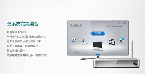 作为国内网络电视机机盒行业领导的开博尔,在2012年率先推出安卓智能机顶盒,而在2013年进一步提出“客厅影音微电脑”构思,并成功研发出高智能人机交互的KIUI6.0全智能操作系统,将“PC+PAD+电视”完美融合一体,相继研发出适合家庭使用的双核网络电视机顶盒和高配置智能乐玩的四核电视机顶盒。而最近开博尔一款主打真3D体验的双核网络电视机顶盒Q1频频亮相,采用定制ARM双核处理器,再加上安卓4.2智能系统与开博尔独家KIUI6.0的深度结合,旨在带来超凡的智能体验。真3D智能机顶盒开博尔Q1不同以往的产品,将同时推出两款外观风格,共有活力银和经典黑两种颜色供用户选择,满足用户的多样化需求。