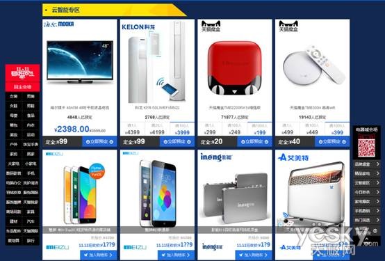 此次入驻天猫主会场云智能专区的品牌除天猫外,仅有5个。分别是影能、海尔、科龙、魅族、艾美特。这些品牌都是各自行业里面的佼佼者,底蕴深厚。譬如影能就是国内第一批智能影能设备制造商,品牌成立已经11年,产品远销海外十多个国家,入驻海外多个知名卖场。在2013年重心转移到国内市场后,以高品质产品、高水准服务,依托全国200多个售后服务网点,迅速赢得国内消费者的青睐,销售量节节攀升。当然,还有与华数正版平台深度合作、几十项实用性专利等因素都是天猫选择影能进驻双十一主会场的重要原因。