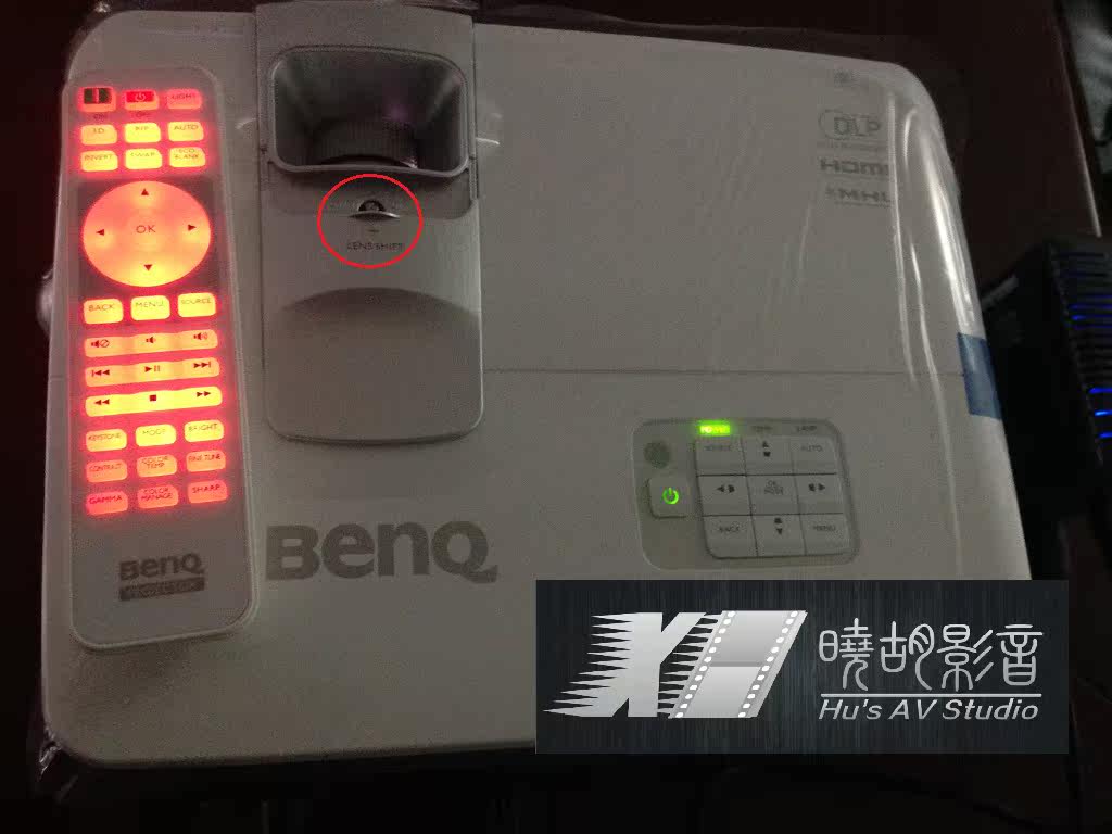 接下来再来测试一下它所谓的 130%的 垂直镜头位移,垂直镜头位移 是遇到,安装调试完以后 发现 投影画面 稍稍高出或者低于 幕布投影区域时候使用,这款机器提供的位移空间只是给你 弥补安装瑕疵的,并不是正真意义上的那种 200%到300%的镜头漂移! 圈圈里就是 镜头位移的 小杆子,要用一字螺丝刀 拧,当然拇指指甲够硬的话 ,可以省钱了(店主现在拇指甲还有些疼!!) 拧到拧不动了,也只上来 7cm(100寸 画面高 124cm)所以也就是 弥补安装瑕疵用的功能,假如你误差大过10cm,画框幕 的话,请扳动投影机投影角度,开一点点梯形校正,电动幕的话 调 幕布限位。