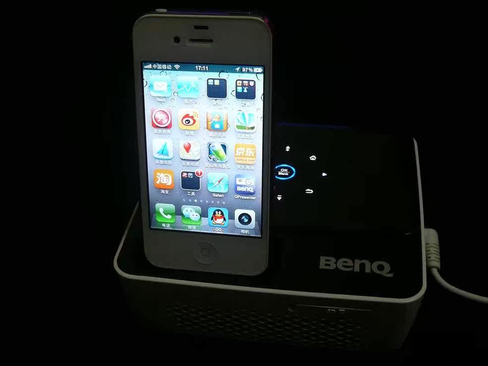 明基GP2标配了苹果专用接口,由于其采用内凹槽式设计,可以支持iPhone系列、iPod系列、iTouch系列等产品。由于实在找不到iPhone4S,我就不多讲了反正这个只是次要的,再4S 和4最火的是卖点现在是55S 6的时代所以可以不讲反正有的是手机接口来兼容的。还是很方便的 .