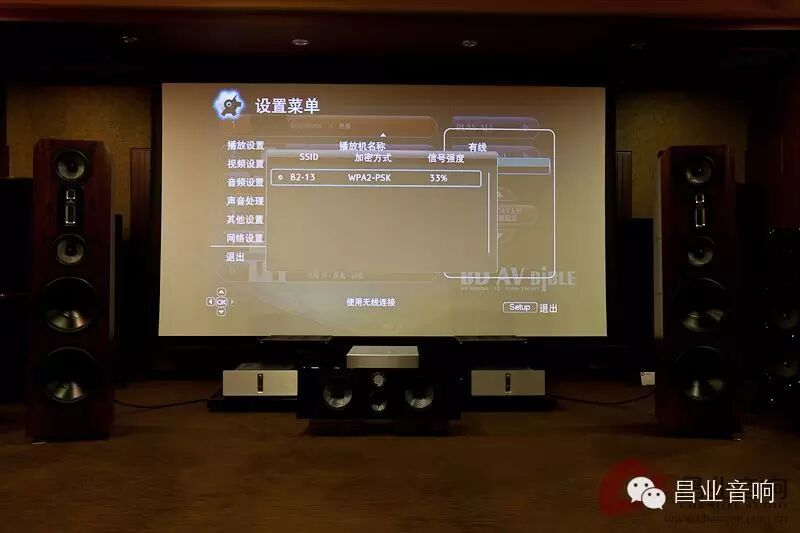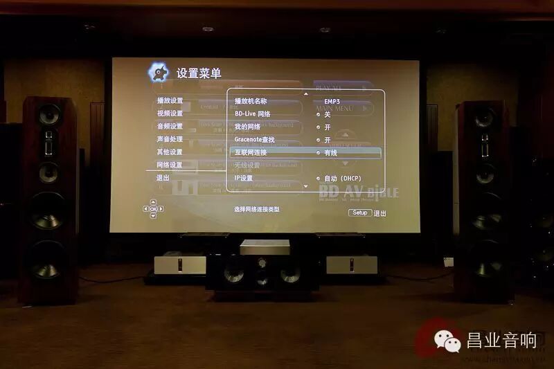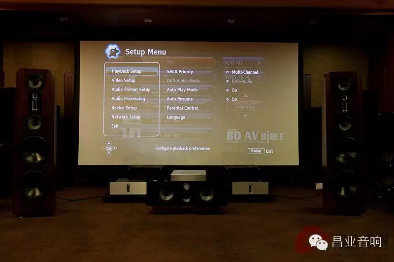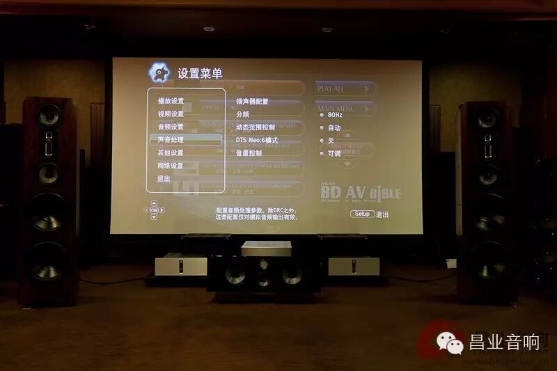 没来得细调画面与音频,基本使用默认的数据,在150寸的大画面上已经能获得鲜艳的画面,暗部的细节层次很通透,热躁点也控制得很好;视频芯片的高速发展与视频信号源的质量已远非DVD时代所能比拟;音频部分也是直接与立体声看齐,多声道包围感的密实与极大的动态表现令人深刻,也难怪如今不少发烧友选择AV多声道与立体声系统双修。