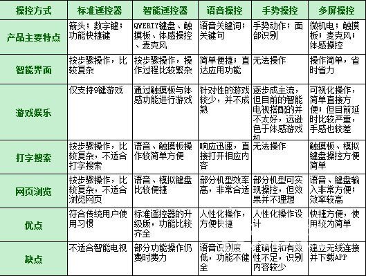 根据操控方法不同我们将以上方式分为两派:由标准遥控器和智能遥控器组成“守旧派”,语音识别、手势操控以及多屏协同划分为“革新派”。两派闻道有先后,也算是各有所长,接下来小编为大家详细对比这几种操作方式有何不同。