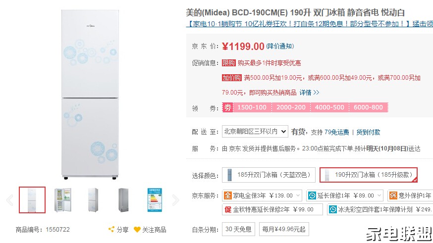 美的BCD-190CM(E)是一款190L的双门冰箱,123L冷藏,67L冷冻,布局合理,满足营养需求,同时机身厚薄优化,空间格局大。