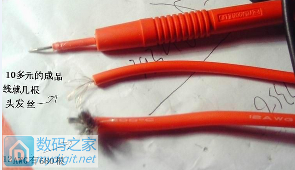 •特软耐高温200°,耐低温-65°硅胶线,比如规格:12AWG,铜丝支数达680根,单根铜丝直径 0.08MM,线的外径4.5MM,也许有人觉得太粗了,不粗,只是比较重一点,比福禄克表笔还要软。