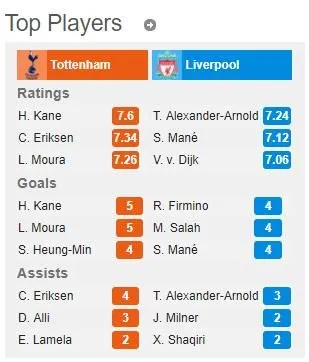 5.利物浦主帅克洛普和热刺主帅波切蒂诺都是当今世界足坛顶级教练,他们在欧冠半决赛均展示出自己的能力,渣叔用残阵在第二回合主场4-0血洗巴塞罗那,总比分4-3晋级,波叔在热刺客场总比分0-3落后的情况下,下半场伊始做出调整,上演了连扳三球的惊天翻盘,总比分3-3阿贾克斯,依靠客场进球多的优势晋级;数据统计显示,克洛普与波切蒂诺在英伦赛场上已经交手9次,渣叔优势明显,取得了4胜4平1负的战绩