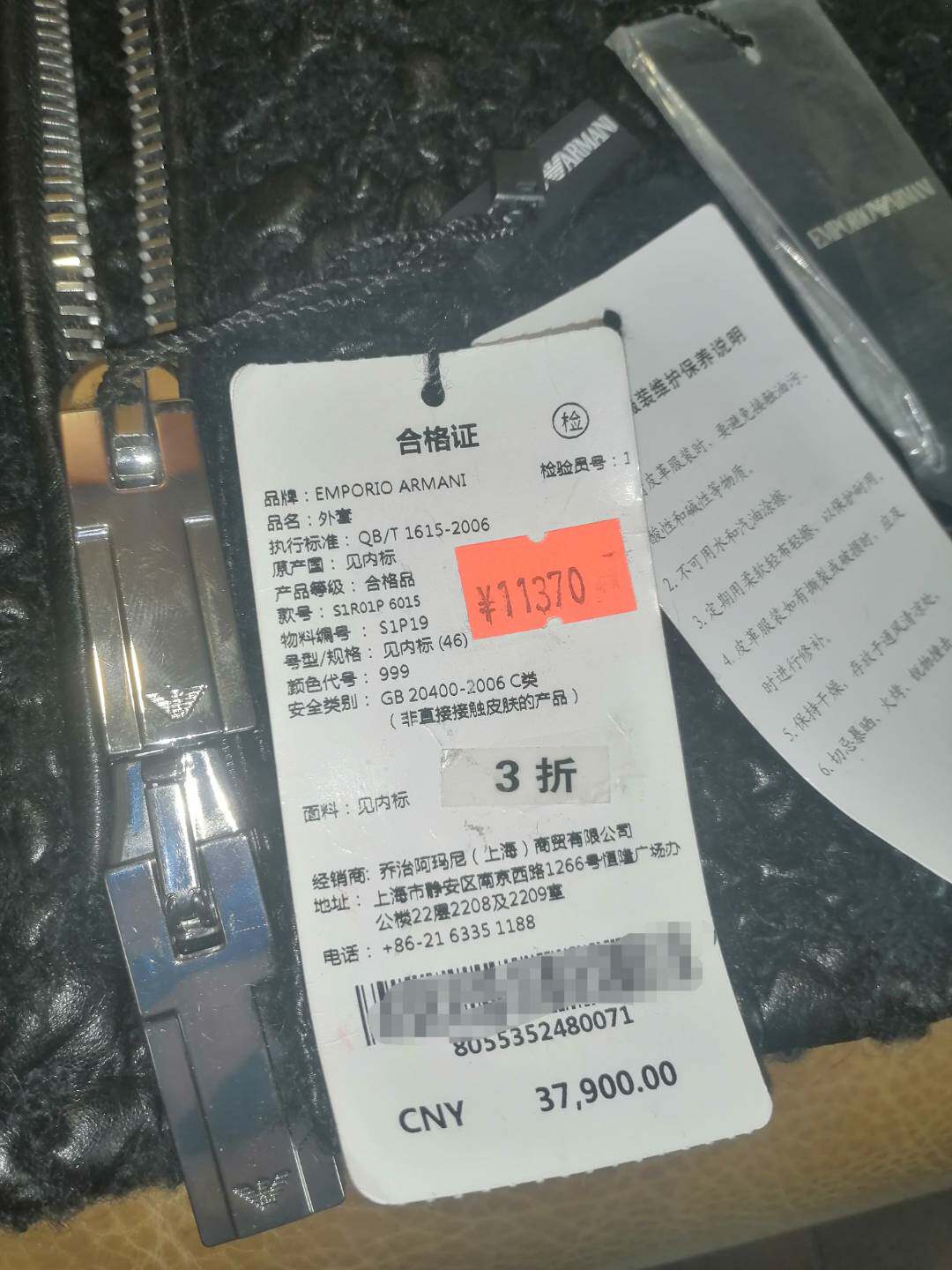 [衣] 男士EMPORIO ARMANI羊皮衣外套只有一件46号170/88A |