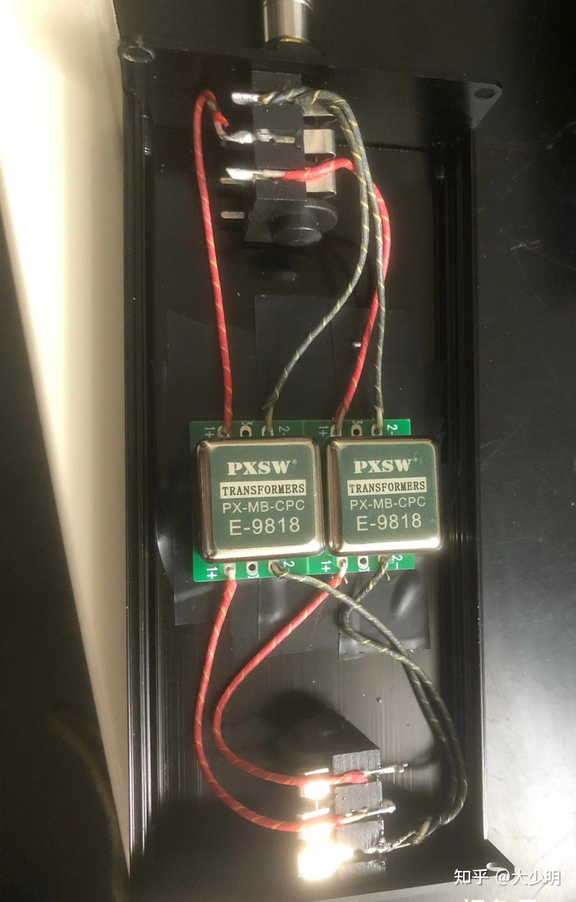 这是一次十分有趣的体验:接上输出牛之后声音变化十分明显,人声与小提琴明显多了几分粘滞感,人声明显筋实了许多,听赵鹏,接了输出牛之后声底更厚实,更有磁性了,仿佛换了一台耳放一般,这种感觉应该就是不少人提起的黑胶味吧? 在这种意外惊喜的驱动下,我又将自己熟悉的音乐逐一试听比较。慢慢地我发现这对铁木兰输出牛的短板也是十分明显的,就是经牛过滤后,音场明显收窄了,速度过慢,这一特点有点与上面提到过的鸡骨草电源线有点类似的味道。表现小提琴独奏或舞台爵士也罢了,改变的优点多于缺点,但来个四重奏之类或更多乐器的场景,就像是乐手们挤在一张沙发上演奏,音场宽、深都拉不开,更别提定位了。这应该不是我喜欢的味道。放弃! 虽然我不喜欢铁木兰输出牛的音色,但趋之若鹜的却大有人在。这类旧货网上有俞炒俞涨的走势了。我随手将做好的铁木兰"牛放"挂在咸鱼上,很快就卖掉了,买家还留言超喜欢之类的评论。可见,对于音色的判断确实是见仁见智各有所好吧。 继续追逐benchmark 的极致之路。 铁木兰给我的启示是,输出牛对于音频线路的影响是十分明显的,那么有没有一种牛可以保留铁木兰的优点而克服它的短板呢? 万能的某宝给了我很多的选择,我挑了个网红款:铍镆合金隔离牛。很便宜,一对才70元,包邮,还送配套的电路板。网购第二天就可以收到。焊接!上机! 无惊喜!无失望!接上和没接没有任何差异。和铁木兰那种一会上天一会下地强烈差异相比,只能用仿无一物来形容。 事后分析,这种隔离牛能做到"仿无一物"已是十分利害了,它本就是个抗干扰设备,并不是为调整音色而设计的。这种牛现在在网上依然很红,购买者众,估计也是各有所好了吧。 折腾了两种口味的输出牛,都一一放弃,最后思路又回到电源处理上。 九零年代,不少日本流入的二手cd机曾很受欢迎,因为日规机都是110V电压的,因而都要配合220v转110v的变压器使用。我当年也曾较长时间使用马兰士cd72日规机。当时就有很多发烧友对比发现日规机的声音要好于220v的国行机。后来有杂志专门有人做对比分析,结论是机器配置用料并无差异,声音差别主要是受变压器的影响。于是隔离牛的概念曾经红过一阵子。好像现在的高端玩法称之为再生电源了。 试试就试试,某宝啥没有! 于是这头大牛来了: 从医疗设备上拆下来体形硕大的变压器,可220转110、也可220转220。 220V电压转成220V电压,打这行文字都觉得别扭! 第一步先做成这样:  上机。 这是一次意外,意外的收获! 没想到这头死沉死沉的大笨牛,竟然让benchmark活泛起来,变化细微却如同脱胎换骨:benchmark 的声音变得平衡起来,背景宁静,音场明显深了许多,乐器的分离度一下子清晰了,再听阿卡多的演译,琴声可柔可刚,细腻却有力度,擦弦的细节让琴声带有粘耳的韧度,情绪饱满。表现常安的《那些花儿》,嘴形、气息都十分到位,音色厚实却又比铁木兰更畅快,一切都到位了,只能用一耳朵的舒服来形容此刻的声音表现了。 最后,为了继续用上那条千挑万选出来的油浸单晶铜线,又小小DIY了一下这只大牛,最后的成果是逐步进化成这样子的: