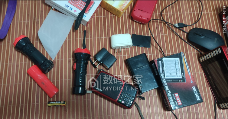 罗马仕2万毫安时的充电宝,10元一个。两个先科的多功能MP3播放机,带收银,可插卡,有充电器,20元一个。直播灯,10元。 男士手包,10元。
