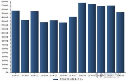 日期 平板电脑出货量(千台) 2016年12月 15,313.00 2016年11月 17,023.00 2016年10月 16,906.00 2016年09月 17,448.00 2016年08月 17,751.00 2016年07月 14,192.00 2016年06月 12,701.00 2016年05月 13,281.00 2016年04月 12,767.00 2016年03月 15,551.00 2016年02月 13,328.00 2016年01月 15,726.00 2016年全球出货量前五的厂商分别为苹果、三星、亚马逊、联想和华为。与整个平板电脑市场的节奏一样,苹果、三星和联想的出货量都处于同比下降的状态中。值得一提的是,亚马逊和华为两家的平板出货量同比增速分别达到了98.8%和49.9%。 |