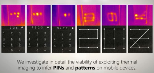 ![]() 随后黑客利用电脑上的热成像画面对屏幕残留的温度进行检测,重构密码区域的温度残留情况,最终得到手机的解锁密码。