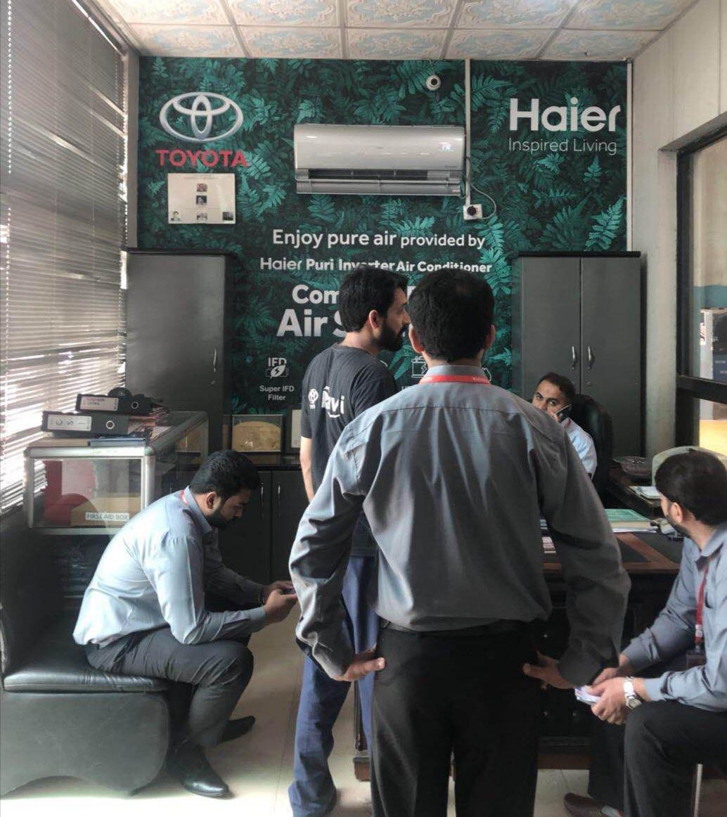丰田汽车是巴基斯坦当地销售份额第一品牌,在拉合尔当地拥有高端的汽车4S店,以 “Green Dealer(绿色销售商)”为目标,打造健康绿色展厅,为客户提供健康的体验环境。据悉,丰田还将通过会员俱乐部推送净界空调产品信息,邀请高端社群用户近距离体验洁净空气效果。 高端汽车4S店体验的是驾驶,更是好空气 在拉合尔的2家丰田4S店内,海尔建起了多面具有视觉冲击力的“海尔空调墙”:深绿色的墙壁给人以清爽的视觉体验,海尔净界空调吹出徐徐凉风。值得注意的是,在空调显示面板上,绿色的光环意味着当前室内空气PM2.5浓度较低,空气质量为优。 同时,丰田店内的海尔净界空调也成为巴基斯坦高端用户体验海尔智慧空气的一个触点。在丰田4S店内,一位前来保养汽车的巴基斯坦用户体验了净界自清洁空调。他在体验后表示,“空调净化效果看得见,而且Wi-Fi用起来很便捷,以后可以在回家之前就打开空调,如果出门忘了关,也可以在公司关掉,很方便。”