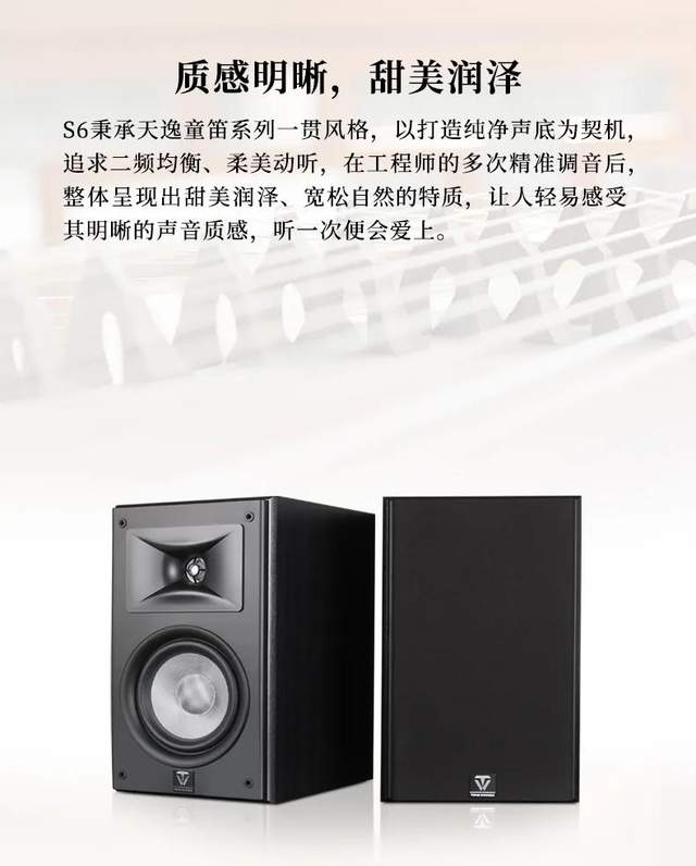 天逸的“童笛S”系列音箱,“S”是“Sweet”的缩写,意指声音美妙、甜美,沉淀着天逸近30年的音响制造底蕴。 天逸最新推出的童笛S6号音箱,采用精密的二分频、后置反射式倒向设计,它1寸的丝膜球顶高音单元、6.5寸玻纤中低音单元,声音细腻饱满,干净利落,有着丰富的细节表现,能够轻松驾驭各种类型的音乐。高低音双线分音的玩法更可满足高级玩家的需求,充分发挥其潜力。 外观上,童笛S6号优雅的木质纹路、时尚经典的纯黑配色,让整个音箱气质非凡,可盐可甜适配各种家居环境。 童笛S6号音箱,入眼形美,入耳声悦,处处都流露着艺术的气息。 惠 AD-66D多功能合并式HIFI功放+TD-S6书架式音箱 蓝牙直连、本地播放、APP操控、HDMI ARC回传、SW-OUT超低音输出、纯后级模式... 天逸这款常青树产品,搭配这款性价比超高的新款书架箱,可谓有颜值有声音,让人看得舒服,听得舒心。 这短短的一生,爱一个人,追一个梦。梦的旅程由音乐相伴,不错过每一帧的惊喜。 日常价:4979元 到手价:3679元 晒单即送SC-1银环蛇喇叭线、无损音乐资源 |