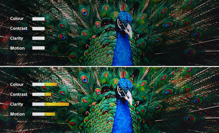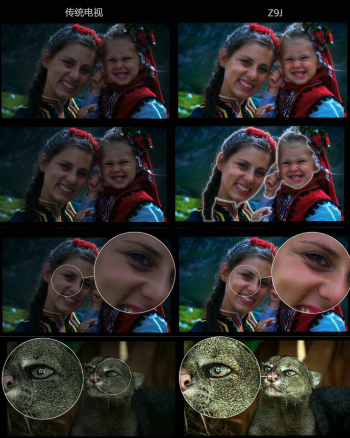 索尼表示在全新的认知XR处理器的支持下,新系列的索尼电视会采用一种全新的处理方法,这将会超越了传统的AI,以复制人类的视听方式。当我们用眼睛看着物体时,我们的眼睛和大脑会潜意识地专注于某些点以构成整体。XR处理器使用SONY的这种类人的智能认知方式,将屏幕划分为多个区域,并检测图片中“焦点”的位置。然后,它就像我们的大脑一样,一次对一系列元素进行交叉分析,索尼声称所有元素都经过相互调整以达到最佳最终结果,因此场景中的所有内容都是同步且逼真的–索尼表示这是传统AI无法实现的。 采用类似人眼处理视频元素的方式,把画面中应该处于“焦点”位置的画面元素优化显示出更好的“色彩、对比度、清晰度和动态”,孔雀的色彩饱和度以及清晰度都得到提升,整体画面在中央区域拉高亮度曲线之后获得更好的层次感。 在动态背景和人物特写画面中可以针对人眼会关注到的眼睛头发和皮肤细节的清晰度进行优化,更好的突出画面主体。 以新的液晶画谛系列8K电视Z9J为例,不管是人物的脸部皮肤细节还是亮度都可以得到高品质的画质提升,相较于传统电视可以获得更好的视觉效果和人物立体感