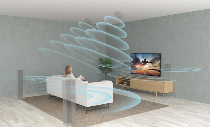 ·索尼XR处理器新增XR Sound音频提升功能,让你感受身临其境 另外不同于传统的X1处理器只针对处理视频信号,全新的索尼认知XR处理器还可以分析视频源信号中的声音位置,从而使声音与屏幕上的动作精确匹配。 目前采用全景声制作的电影也越来越多,在IMAX影院中我们可以感觉到来自四面八方的不同声音定位声效,在结合充满视觉冲击力的画面之后,来自不同位置的声音定位效果会让人观影时感受到更加沉浸的影音体验,但是在家庭环境中传统电视仅有左右两枚扬声器的时候,声音是从电视的电视的两侧发出定位,我们会感觉音效定位感受与画面上的声音并不吻合。而新款的BRAVIA XR 电视先进的音效处理能侦测观看影片的声音所应该在萤幕上的位置,并把准确的声音效果定位从正确的位置展现出来。以Z9J为例,它可以通过索尼电视成熟好评的多声道屏幕声场技术,以及独家的“边框发声技术”——魔框声场扬声器,在边框不同位置额外加入扬声器单元,电视得以拥有更为丰富的“物理”多声道;在全新设计的电视“大脑”XR认知芯片对音场的实时优化,在杜比视界及杜比全景声的加持下,声音环绕立体感更为出色。获得类似在IMAX全景声影院一般的环绕沉浸感受。此外,它可以将任何声音上转换为3D环绕声,以提供身临其境的音景。 普通电视的音效是横向传到房间,而 BRAVIA XR 电视则可以向四面八方传出声音,令您彷如亲历其境一样。无论观看任何内容,BRAVIA XR 电视都会分析并将音频,转换为 5.1.2 声道环迴立体声,为您带来更真实的多维体验。音效不仅能够水平定位,亦可作垂直定位,创造真正的 3D 音效。
