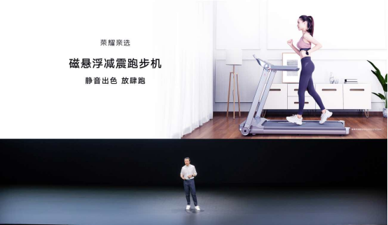 磁悬浮减震跑步机,荣耀运动健康再进一步 运动健康领域是荣耀全场景智慧生态中不可或缺的重要一环,售价1999元的荣耀亲选磁悬浮减震跑步机,凭借三大核心减震技术,为消费者提供了出色的减震体验,最大限度为消费者的健康提供保障。 减震是跑步机的重要参数之一,出色的减震效果,不仅关系到奔跑体验,同时也能够降低跑步机的噪音,更好地保护跑者膝盖健康。磁悬浮减震跑步机采用了专利磁悬浮减震(zl202021870647.7)、高级跑鞋缓震材质以及柔性软跑板减震三大核心减震技术,当跑者不断重复同一奔跑动作时,磁悬浮减震跑步机能够有效双向分散化解跑版冲击力,更好保护脚踝与膝关节,带来舒适流畅且健康的奔跑体验。 一体折叠式设计,开箱即用,收纳更加便捷。磁悬浮减震跑步机还支持与运动健康App连接协同,手机轻轻一碰,便能实现轻松畅连;开启运动数据实时记录后,还可以将荣耀手表、荣耀手环进行连接,利用运动健康App可准确便捷的记录下运动时间、距离、速度、心率、燃脂等多项数据,更好的了解身体指标的变化,为下一步运动计划的改变做准备。