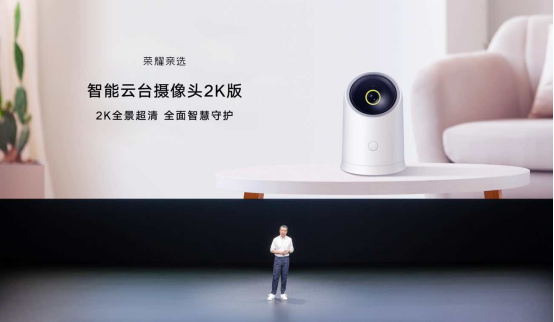 智能云台摄像头2K版,超广高清视野看家更放心 除了健康运动领域,居家领域也带来了一款新品,售价249元的BYBLUE 智能云台摄像头2K版。这款智能云台摄像头在画质、功能上全面升级。该产品采用海思智慧芯片,支持2K三百万超高清画质,F1.6大光圈,成像更透亮,即使微弱光线也能呈现全彩画面微光全彩图像。超高清画质,不仅能做到 24 小时家庭看护、安防,还可以时刻记录每一个美好瞬间。 这款智能云摄像头采用双云台设计,可以实现水平360°全景监控,拥有垂直150°大视角,视野全覆盖。此外,该产品还具备强大的 AI 侦测功能,可以人形侦测、哭声侦测、移动追踪等,赋予更多智慧家居看护安防的能力,能够轻松满足对老人、孩子、宠物的守护,让你体验更多以手机为核心的全场景智慧家居生活体验。 这款荣耀亲选 BYBLUE 智能云台摄像头2K版还拥有一键直呼、一键分享、智能手势、设备协同、智慧互联等智慧便捷功能,并从企业级安全标准+云端数据加密+物理遮蔽,全方位保护隐私安全等多维度构筑了更加坚固的隐私防御体系,保护你的隐私安全。