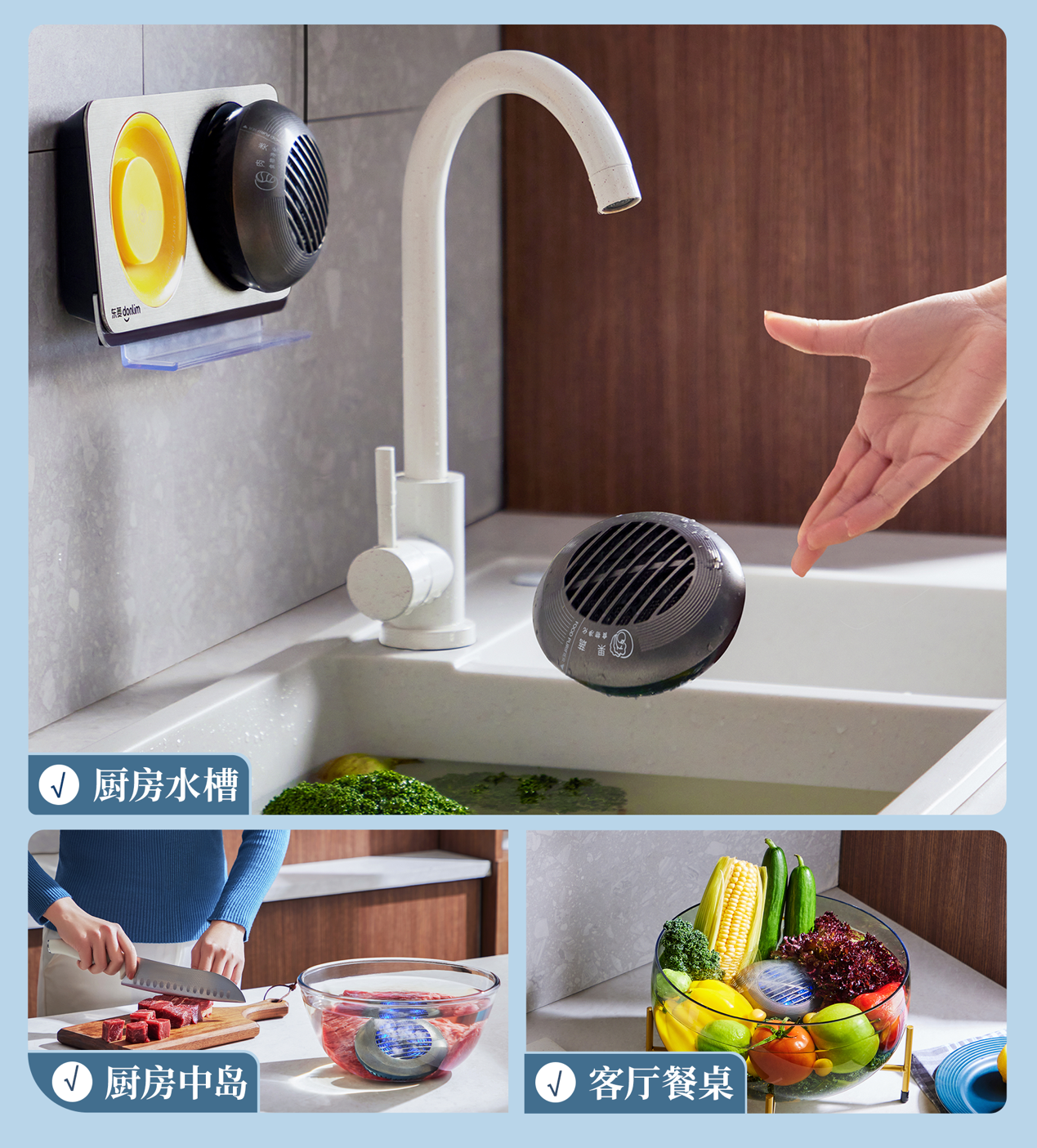 无线设计,自在享受净化体验 传统的有线果蔬消毒清洗机,如乱麻般的电线杂乱难以打理,使用时还会受到电源线长度的限制,且常年收纳后产生的水渍也会成为细菌滋生的温床。东菱分类果蔬净化器采用无线设计,使用的便捷性和人性化的体验同在。远离多线烦恼,把杂乱变有序,打造有条理的厨房生活;纤薄的机身日常挂于墙上,桌面空间得以节省,实现厨房空间的合理利用;产品卓绝的颜值,搭配未来科技感,让厨房更添格调。 小巧轻盈的东菱分类果蔬净化器,不受限于容器的大小与放置的位置,不用再迁就插座的位置,厨房水槽、中岛,甚至是客厅餐桌,都能随时随地净化食物。此外,配备的无线感应充电,随放随充,持久的续航力为每一个即兴下厨时刻保驾护航。