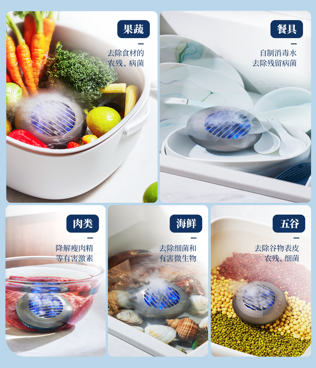 像草莓、西蓝花等比较难清洗干净的果蔬再也不需用盐浸泡清洗,用东菱分类果蔬净化器一键净化,日常生食、拌沙拉每一口都能安心食用。不仅如此,肉类中的激素以及瘦肉精,海鲜中的重金属、餐具中的幽门螺杆菌等等,东菱分类果蔬净化器也能轻松去除。据权威机构检测,细菌去除率>99.99%、农残去除率>90%、瘦肉精去除率>83%[1],从源头上解决舌尖上的安全隐患,让家人安心享受每一餐。