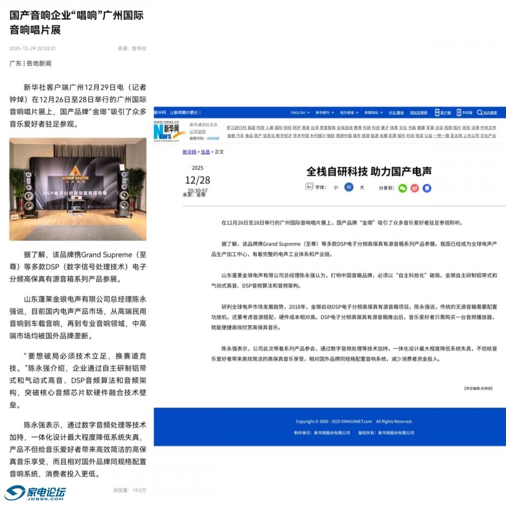 现场观众反馈,这款音箱的“极致均衡与充沛信息量”让音乐表现“超凡脱俗”,能够真实还原录音细节,带来“聆听真实、尽揽万象”的震撼体验。 ![]() 专业讲座与现场表演,深化音乐审美教育 金瑯在展会期间特别策划了《正确听音观和音乐审美》互动讲座,邀请长安大学艺术教育中心副教授、男高音吴鹏,以及西安音乐学院声乐副教授、男中音赵远征亲临现场。两位专家通过专业讲解与现场示范清唱,结合星海音乐学院管弦乐手表演的耳熟能详的经典二重奏作品,让观众近距离感受不插电的真实人声与器乐表现。这一活动不仅传递了科学的听音方法论,更引导观众以“真实”为依据,深入理解高保真音响的选配逻辑,现场反响热烈。 ![]() 媒体聚焦:国产电声科技的全栈自研突破 金瑯的技术创新与行业贡献也获得主流媒体高度关注。新华网于12月28日发表《全栈自研科技 助力国产电声》报道,肯定其在电声领域的技术融合与自主开发能力;12月29日,新华网再度推出专访《国产音响企业“唱响”广州国际音响唱片展》,深入解读金瑯以电声、材料、计算机仿真、算法及AI等多学科人才为核心,打造系统化、数字化音频框架的技术路径。 ![]() 该框架未来将逐步应用于专业录音监听、高保真音乐鉴赏、消费类娱乐影音、汽车座舱音响及会议舞台扩声等多场景,为国产电声行业注入全栈自研的科技动能。 总结 作为全球音响行业的年度压轴盛典,广州国际音响唱片展不仅展示了国际顶级音响设备与唱片文化的交融,更通过金瑯等国产企业的技术突破,推动了行业从“硬件展示”向“技术赋能”的深度发展。金瑯以“Grand Supreme”至尊音箱为核心,结合专业讲座与现场表演,为观众提供了沉浸式的视听教育与体验,彰显了国产音响品牌在全球舞台上的竞争力与创新力。 |