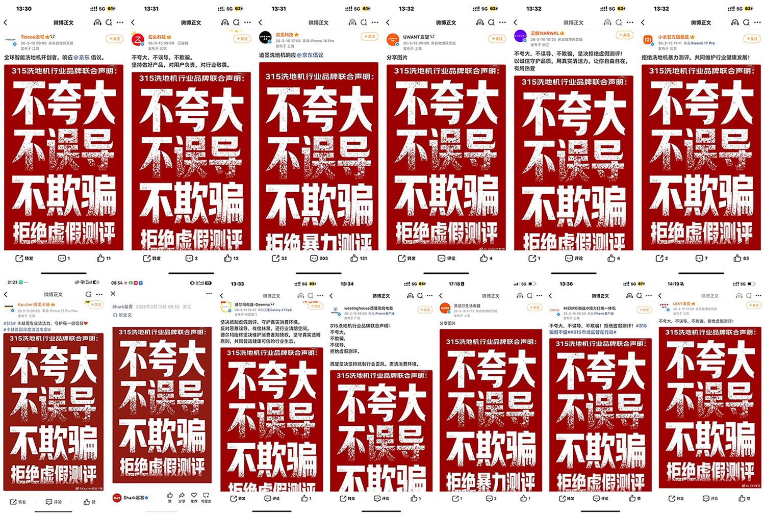 京东联合13大洗地机品牌共同抵制虚假评测行业乱象,不仅是一次正面回应,更是在推动洗地机行业重新厘清“测评”与“营销”的边界,促使行业竞争回到产品能力、技术创新和使用体验本身。京东希望与品牌共同推动测评内容回归真实、消费决策回归理性、行业竞争回归有序,持续助力洗地机行业朝着更加透明、规范、健康的方向发展。 |