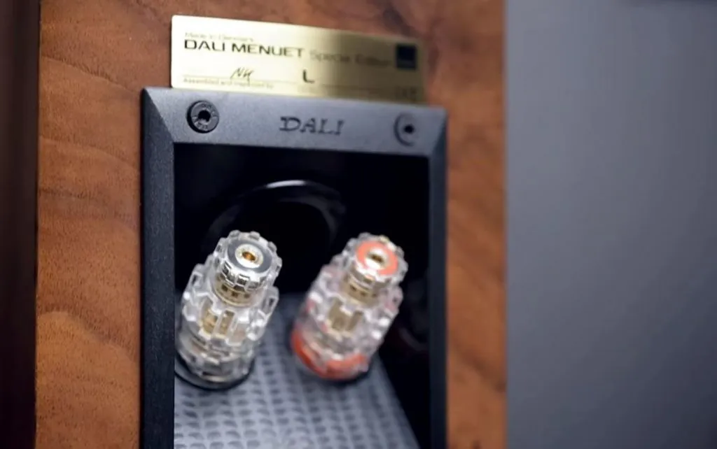 Menuet SE书架音箱的音箱接线柱采用与达尼旗舰系列Epicon相同的接线端子。达尼告诉我们,这款Menuet SE虽小,但从电容、内部线材和端子的选择就知道它其实并不简单。
