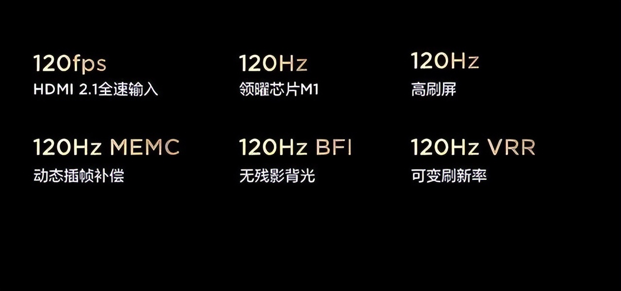 其全面支持120Hz,包括芯屏口,具有三个HDMI 2.1接口,MEMC,VRR也都支持。同时在对比度上,支持杜比视界IQ,音响功率40W,也能带来多声道的立体沉浸音效,支持杜比全景声。其支持双频WiFi,4核A73处理器,4GB内存,64GB存储,6.5ms响应时间,总功耗270W。
