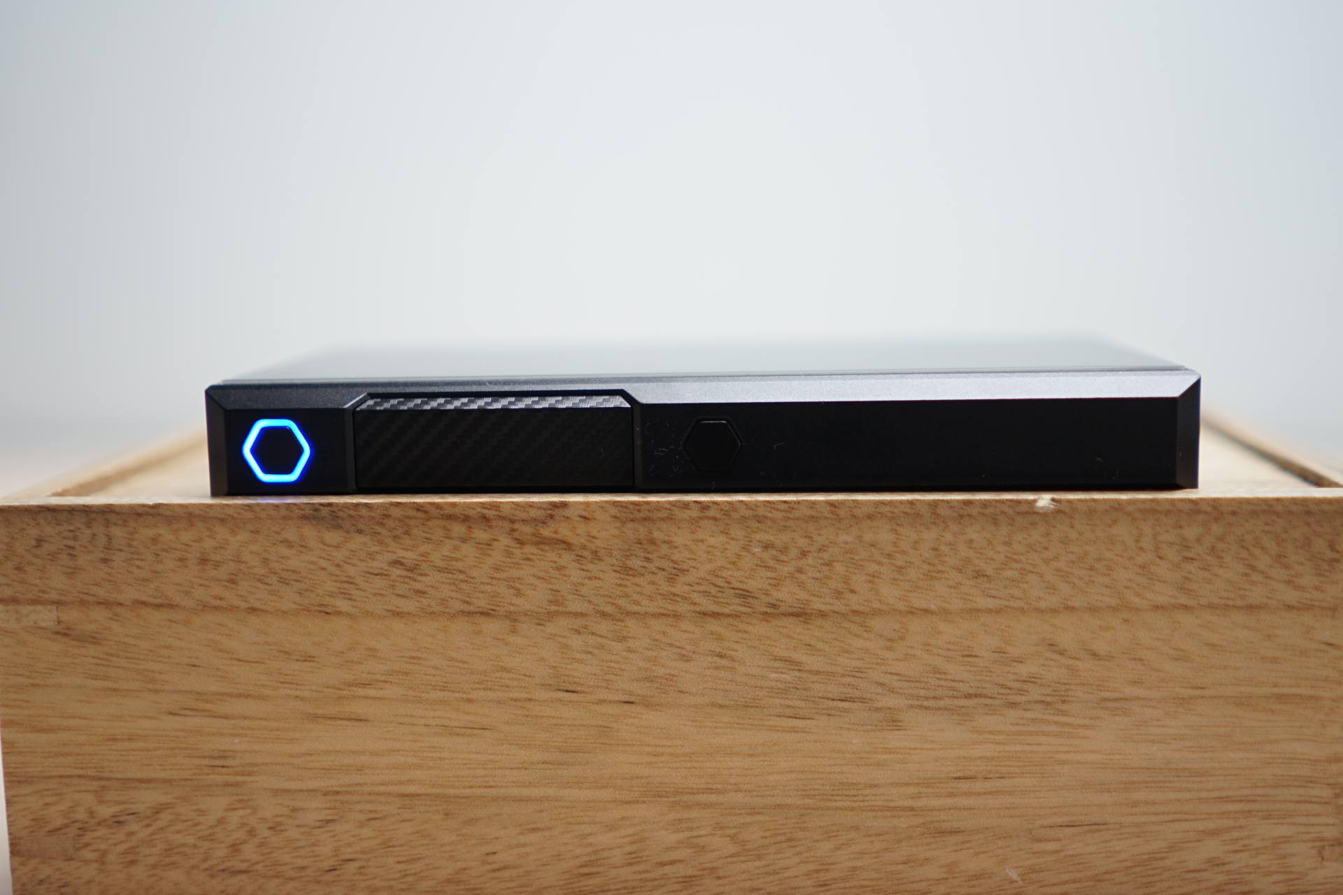 机身左侧设置有电源键、音量键、自定义按键,其中电源键采用了六边形的设计,电源键周围有一圈蓝色的指示灯,颜值还是非常高的,自定义按键很人性化,用户可以根据自己的使用习惯自定义按键的功能。