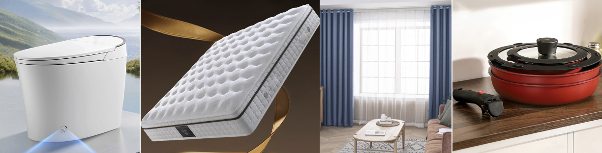 除品质家电外,京东家电家居“一价全包”还覆盖卫浴、睡眠、软装、厨居等场景的家居产品。其中,恒洁x京东联名云卫士智能马桶H36Max采用S弧无棱内壁,搭载泡沫云盾实现防溅、防臭、防污三重防护,升级全家洗护体验。家装节期间下单享送装一体服务,送装同时完成旧机取旧。慕思乳胶Smart智慧弹簧床垫专注护腰护脊,京东就近仓闪发,免费送货上门安装,支持免费取旧换新与免费试睡。水星家纺免打孔遮光家用窗帘,采用5层加厚面料,购买即赠伸缩杆、绑绳等配件,一价全包无需额外采购。卡罗特叠叠锅三件套采用可拆卸手柄设计,锅具可进烤箱、洗碗机,三锅可叠放收纳。家装节期间享不满意包退换服务,锅体提供一年质保。