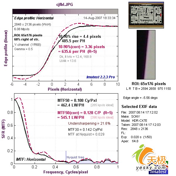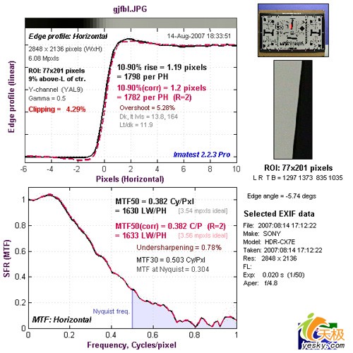 拍摄的分辨率标板 分辨率测试的方法是:拍摄分辨率标板后试用Imatest软件作量化测试。
