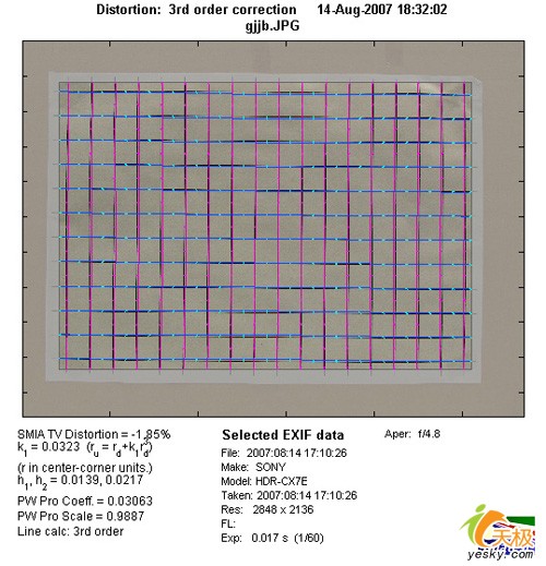 索尼的界面一目了然 几乎所有的设定都可以在HOME菜单下完成 菜单设计简洁易懂,即使是新手也很快能操作自如 回放界面 镜头畸变测试 众所周知,大变焦镜头的畸变控制非常不易。搭载了CarilZeiss10倍光学变焦的T*镜头其表现如何呢? 标准方格址 我们分别实用该机型的长焦端、广角端拍摄了标准方格纸,并使用Imatest专业图像分析软件进行了畸变度的量化测试。 广角畸变测试成绩 广角一直是小像场镜头的软肋,而令我们惊讶的是这支镜头在广角端的畸变度仅为-1.85%,没有超过-2%能说是比较轻微的桶状畸变,是非常优秀的成绩,这个值甚至超过了一些旗舰级的大口径数码相机。 长焦畸变测试成绩 不出所料,这支CarlZeiss10倍光变的镜头在长焦端将畸变控制的水平发挥到了极致,仅-0.235%的成绩,近乎为0。从使用角度来说是完全没有任何畸变的。 通过测试我们对这款镜头已经留下了十分良好的印象,无可置疑它在数码摄像机的镜头中是独树一帜,甚至在相机镜头中也是出类拔萃的,可见索尼对这款机型的重视程度。 然后再看看在实际拍摄中的表现 广角端实拍 长焦端实拍 Imatest色板测试
