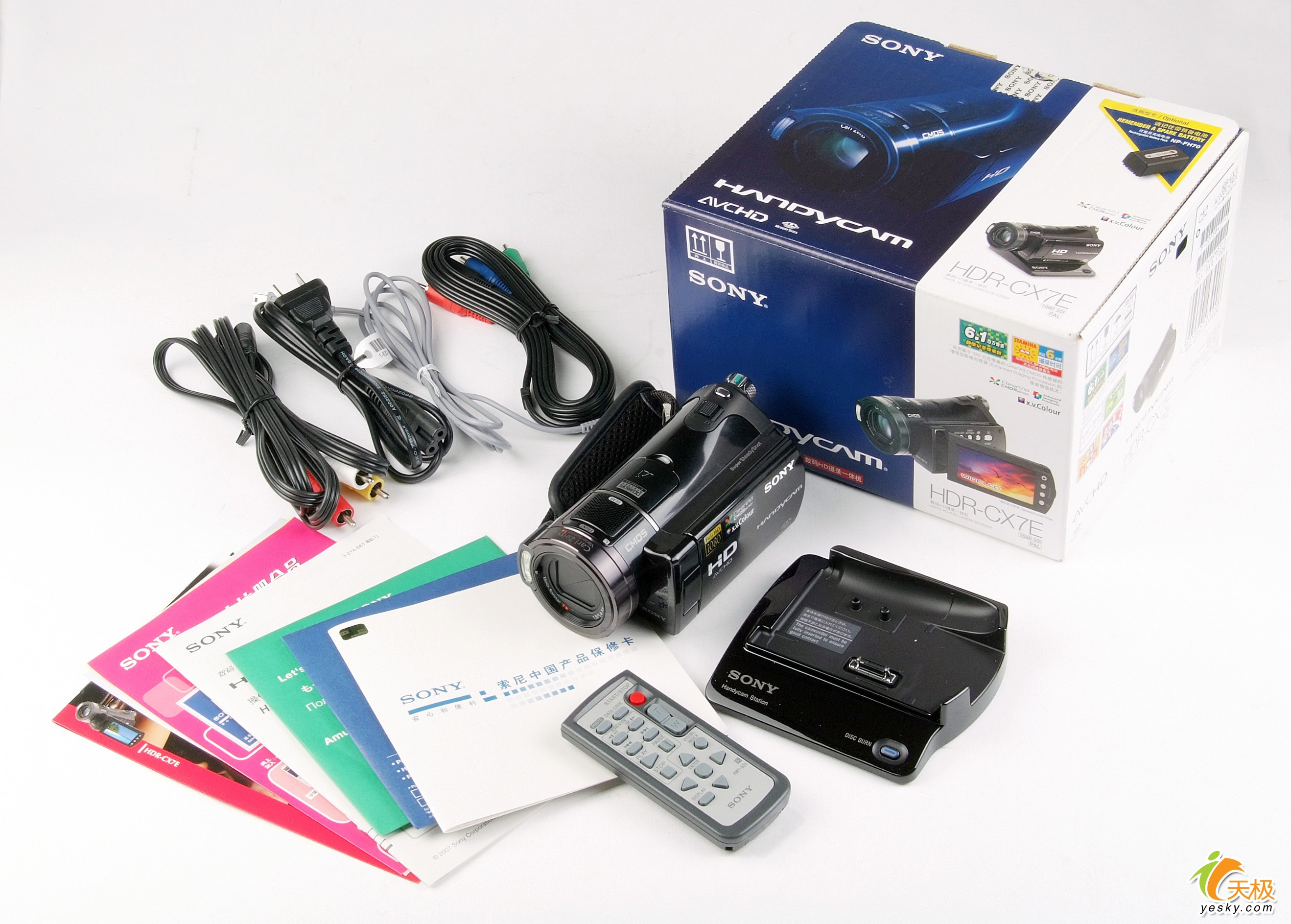 SR8E配件相当齐全,包括很少见的高清分量输出线,底座和遥控器 整机含电池重量452克,卸下电池只有370克,便携性达到了空前的高度 CX7E主要参数