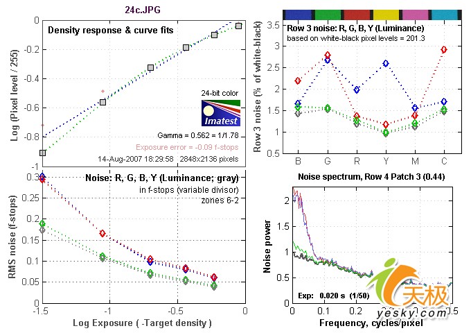Imatest的色板测试主要针对躁点、白平衡以及色彩偏移输出量化指标。