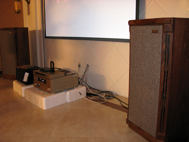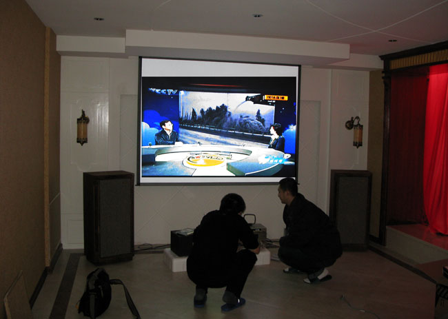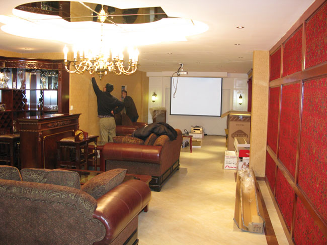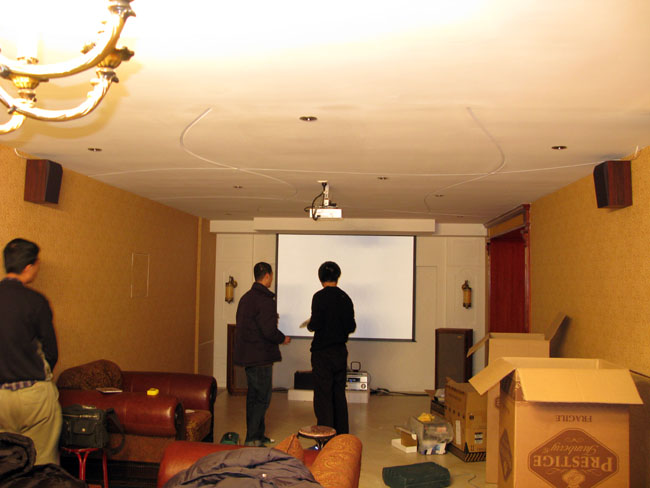 我设计的家庭影院就将被安装在这所房子的地下室里,很显然这不是一所普通的房子,应该是别墅吧! 在别墅的后门我把车停在这里秀一下,随后我就进入房子和主人一起完成他的家庭影院。 这真是个豪华装修的别墅,杨生音响实验室的工作人员们正在测量距离,以便把安装进行的完美无缺。 为了在施工中不给装修好的房间带来污染和保护装修,那个塑料带是为了接住钻孔时产生的灰尘的。 这对天朗DC系列的后环绕就要被安装上了,的确是豪华级的,光是中环音箱就要价值8500元。 后环绕安装后的视觉效果 这不是天朗的“图贝利”吗,它被用来做家庭影院吗?是的,我用它来做家庭影院的主音箱。这样才真正能做到听音乐看电影两全其美。 在日光下拍摄就能看出这对音箱是还没有上蜡的,这中音箱最好是每年为其打一次蜡,此箱随箱付送了两盒蜡。 不同的给图贝利角度可见我是非常喜欢这对音箱的,主要是它的声音太迷人了。 音源使用了先锋DVD600,所以,如果再配上台发烧CD机,那声音才能最好。现在使用DVD做音源我看也就只能是发挥出图贝利的3成吧,还有7成是等待开发的,这个我已经告诉主人许先生了。 细心的朋友可能会发现,2008年出品的这个SE图贝利的标牌和以前的不一样了,变的更顺滑了。当然价钱也不一样。 工作人员正在调整投影机 我的家庭影院标准就是必须要用投影机,因为,只有投影机才能投放出100英寸以上的画面,而只有大画面才能有家庭影院的感觉。这台奥图码的HD70的机器马上就要工作了,瞧,我们使用的渡银的HDMI、VGA线。 我们在调试安装那天正好是南方下大雪,这个画面是中央电视台在直播下大雪的情况。 这是我搭配是豪华家庭影院,当然由于采用了双功率推动的功放,所以即使那台功放是AV的那么也会发出天籁声音的。 |