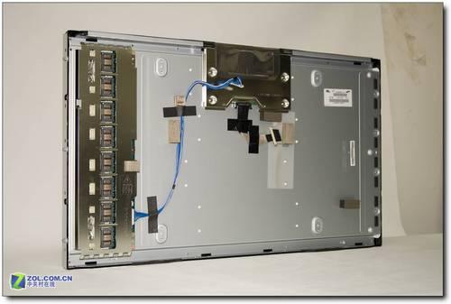 进口电视面板特写 上图为一款进口液晶电视拆解后面板的样子,整体干净利落,接口全部直插式设计,方便插拔。