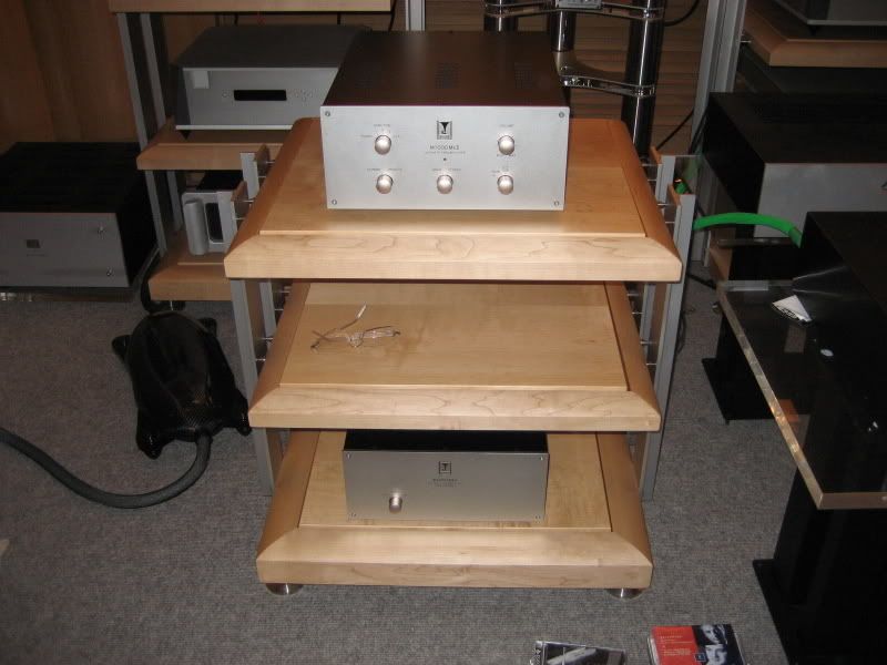 为什么不是标准阔度的18寸、19寸?而是足足24寸!锺一聆听室共放了三张高度相同的GM层架,以一字形平排摆放,架与架之间只留了大约5mm的窄小缝隙,亦即是说,Stable-1的左右两边会延伸到隔离的层架范围。怎算?何解会是那么大块?有需要吗?