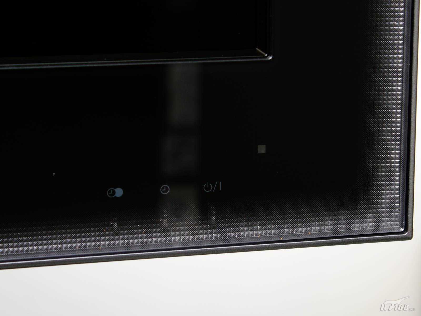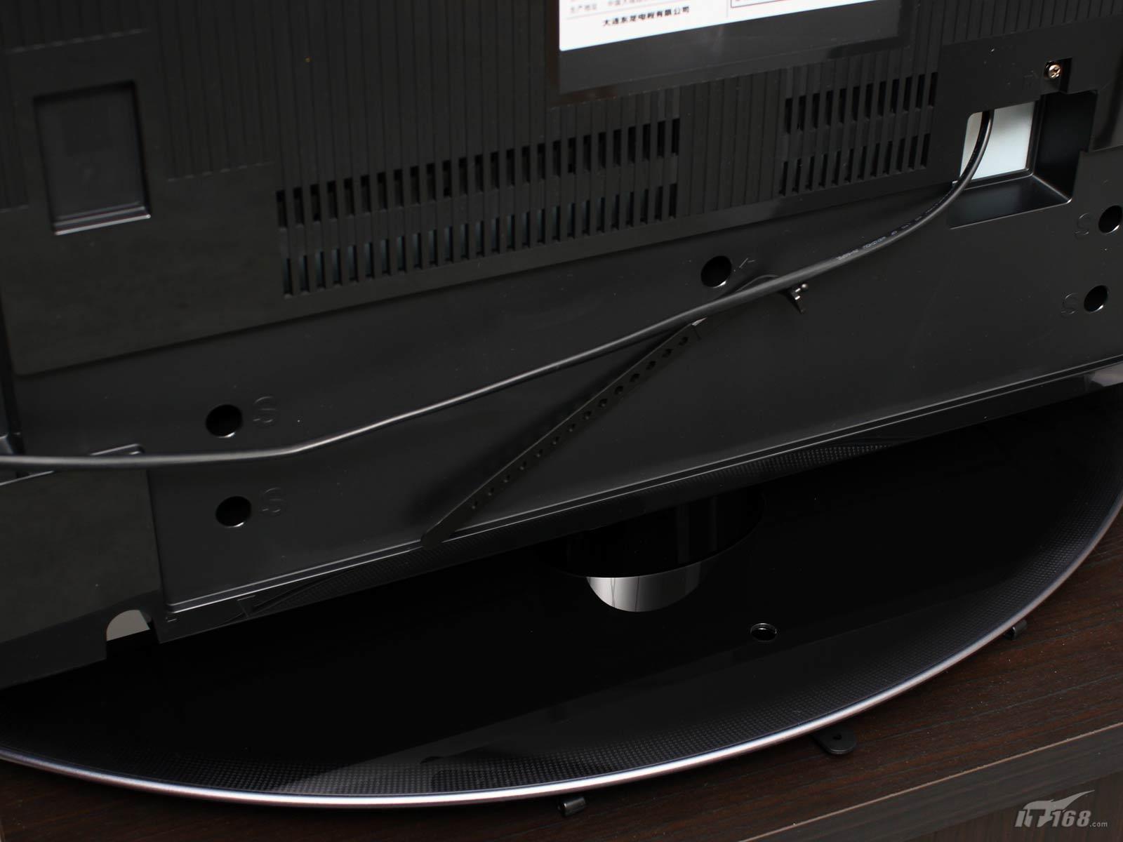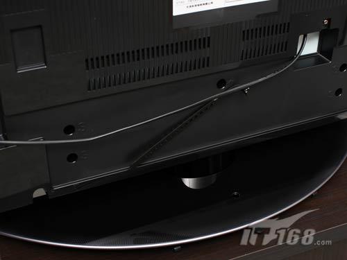 面板整体感很强,除了中置的品牌logo之外,仅剩右下角底座两头尖尖,像个橄榄球,表面依旧采用光滑的材质,与机身相互辉映。与以往 东芝的底座一样,都带有固定线缆的设计,加上背部多个捆扎线缆的装置,可以为拥有很多设备的用户解决烦恼。
