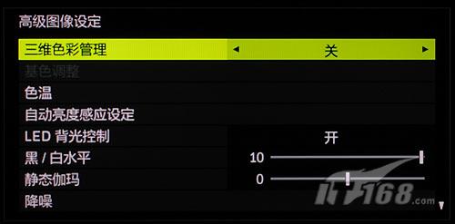 高级图像设定里,有些我们比较熟悉,比如色温控制选项的6色调节,不过在色温控制里面具有10档调节,我仔细测试了每一档的色温值,从5700K到10500K每隔500K色温一档调节,不管你追求D65的准确还原,还是高色温的明亮感,这里面都能够找到你喜欢的色温。