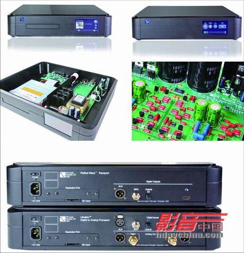 PerfectWave系统由PerfectWave Transport(PWT)与PerfectWave DAC(PWD)两台即相互独立又互相联系的机器组成,二者均支持DLNA(数字生活网络联盟)。PWT只是一部数字解码器,本机只有纯数字输出,除了常见的S/PDIF和AESEBU,值得一提的是,还有HDMI端口,以I2S格式输出数字音频。要想最终获得模拟音频,还必须有相应的DAC进行模拟→数字的转换,PWD就是PWT的最佳搭档,二者均有独立电源并通过各自的全彩触摸屏进行触摸控制,也都有SD卡输入端口,因此PWD更像一台高端的Multimedia Hard Disk Player,只是输入方式少一些而已。