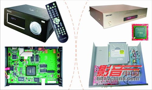 两款有代表性的Multimedia Hard Disk Player Multimedia Hard Disk Player,即硬盘播放机,这类设备的基本特征是内置硬盘或者从PC的硬盘上读取媒体文件进行播放,硬盘上的文件通过USB或者1394从PC拷贝或者通过RJ45端口直接从网络下载,支持多种音频、视频文件格式,目前市售的机型都支持或多或少的高清音/视频的解码。Multimedia Hard Disk Player最令我们感兴趣的是它具备高清音/视频解码能力,目前市场上 “高清播放机”、“高清多媒体硬盘播放器”之类的宣传比比皆是,而且它要比基于光盘的Universal Disc Player便宜不少,媒体资源从网络取得,也更方便、廉价而且更具个性化。Multimedia Hard Disk Player真的会最终导致光盘消亡么? 目前还看不到这个趋势,原因大致如下: