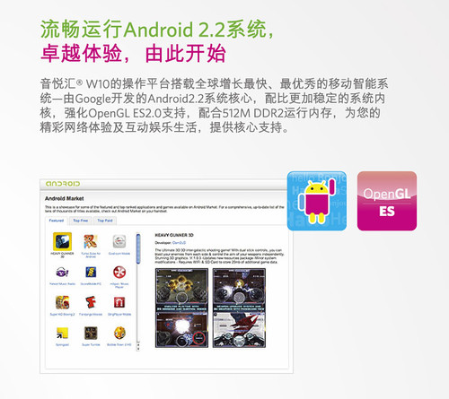这款全新的平板MID上,将采用Android 2.2系统,此外蓝魔W10还开放支持USB/蓝牙键盘以及离线地图存储之类,并且大幅度对性能进行优化,同时也支持了Flash10,这些提升将进一步从软件方面提升MID产品的使用体验。