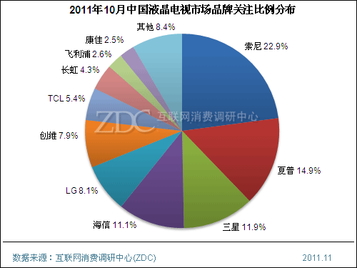 [量子点/液晶电视] (转发)2011年10月中国液晶电视市场品牌关注比例分布 |