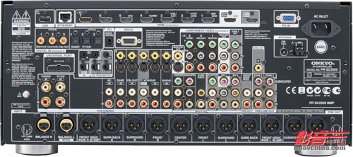 作为安桥最新的顶级环绕声处理器,它的音频处理电路也是相当厉害的。在环绕声处理部分,PR-SC5509采用了32bit的DSP芯片用作环绕声处理。其出色的运算能力可以完全满足DTS-HD Master Audio、Dolby True-HD这类高清环绕声格式的运算要求。而在D/A转换部分,PR-SC5509采用了6个具备32bit/192kHz规格的BB PCM1795芯片来实现D/A转换。