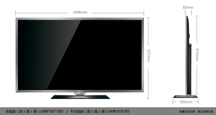 1、65寸3A级超大屏幕,色彩表现真实震撼,视角更宽广。