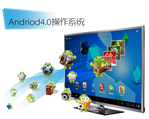 首发Andriod4.0操作系统,涵盖海量云应用:云存储、电视支付、安全卫士、电视微博、3D体感游戏、语音识别、异地视频等功能,让您畅游无限精彩的云端。
