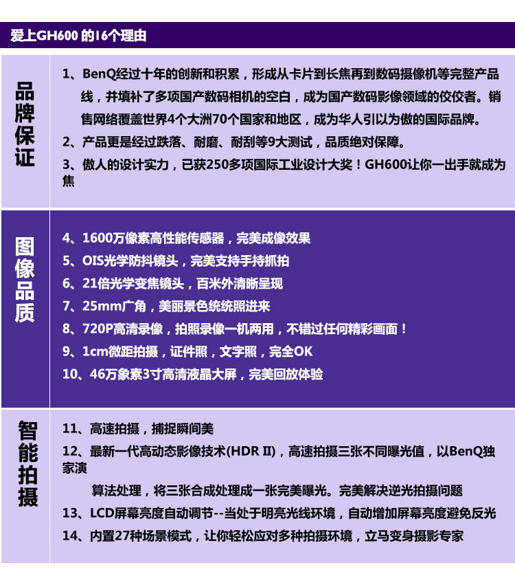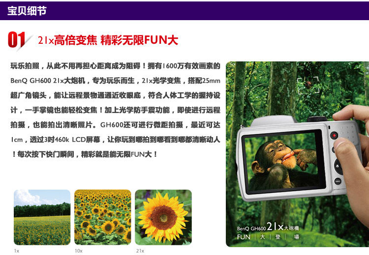 明基GH600拥有1600万像素,21倍的光学变焦镜头,完全能满足日常生活中我们所面临的场景,下面我们就一起来看一看这款数码相机的具体表现。