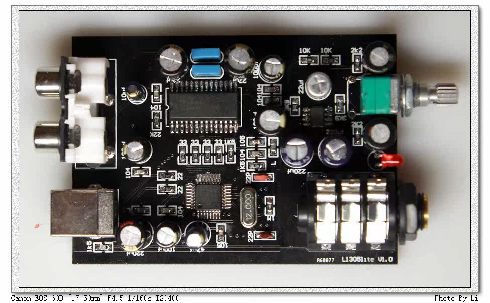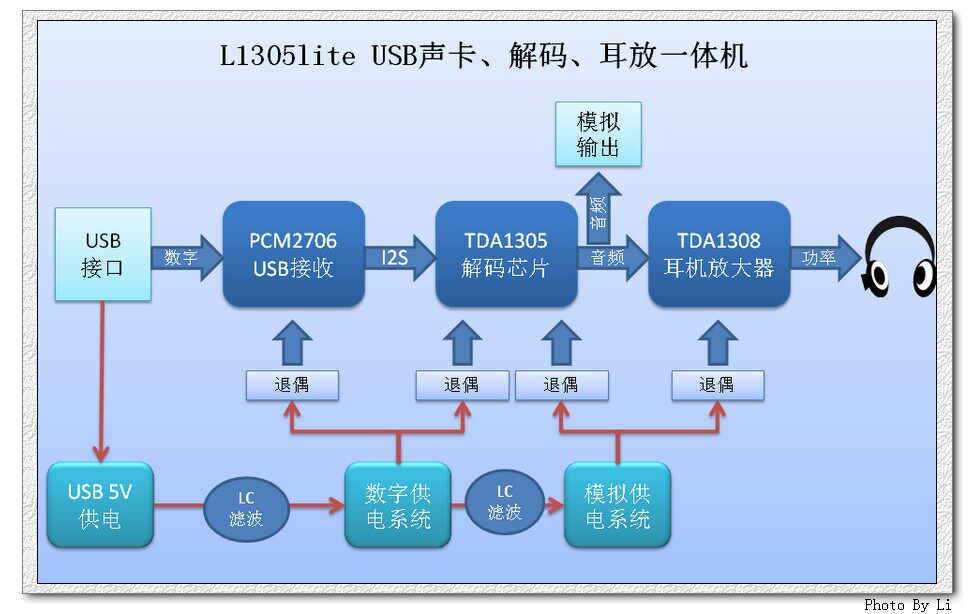 [其它] L1305lite USB声卡、解码、耳放一体机 PCM2706+TDA1305发烧方案,笔记本听歌利器 |