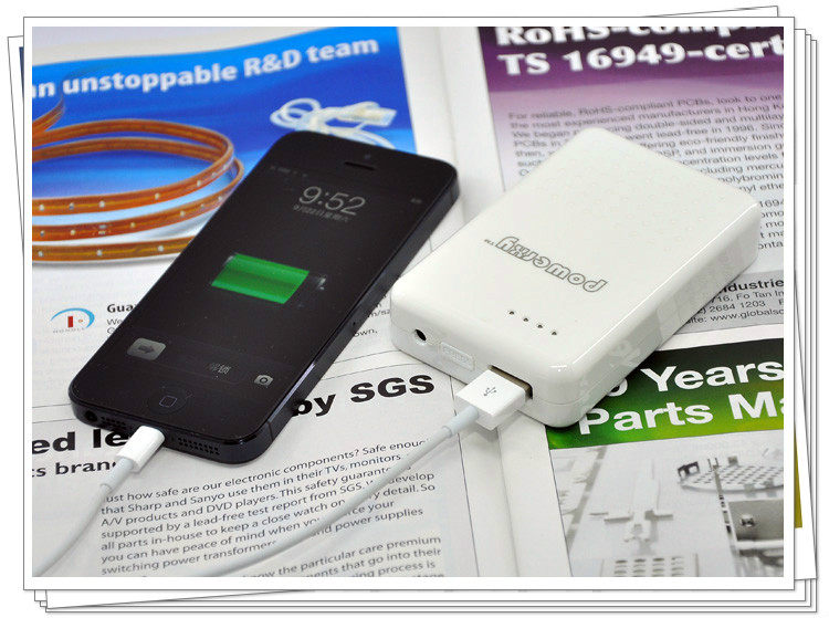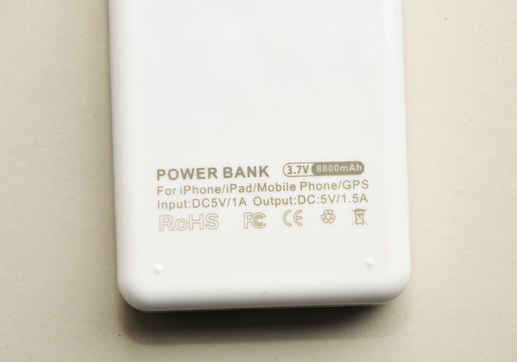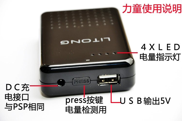 USB输出:5V-1.5A(最大) 充iPhone 80分钟充饱,非常快(原装数据线实测),可以完全充饱4次iphone4S或者iPhone5. 带电量指示: 4颗绿色LED 分段指示剩余电量.